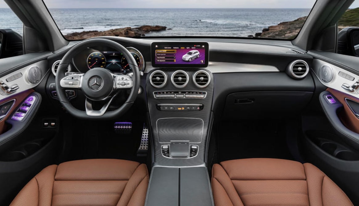 The cabin of the 2022 Mercedes-Benz GLC features a touch screen multimedia display that gives access to various applications to convenience drivers, including the added voice command to navigate the display and smartphone capability. The driver also has access to a digital instrument cluster display to navigate vehicle information, settings, and driver-assistance features. Additionally, the comfort features within the SUV include dual-zone climate control, powered front seats, and heated front seats.